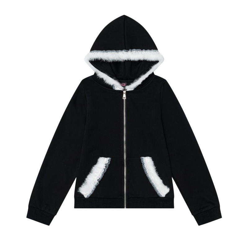 Black Hoodie With Lace Detail