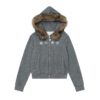 Vintage Graphic Hoodie With Detachable Fur Collar